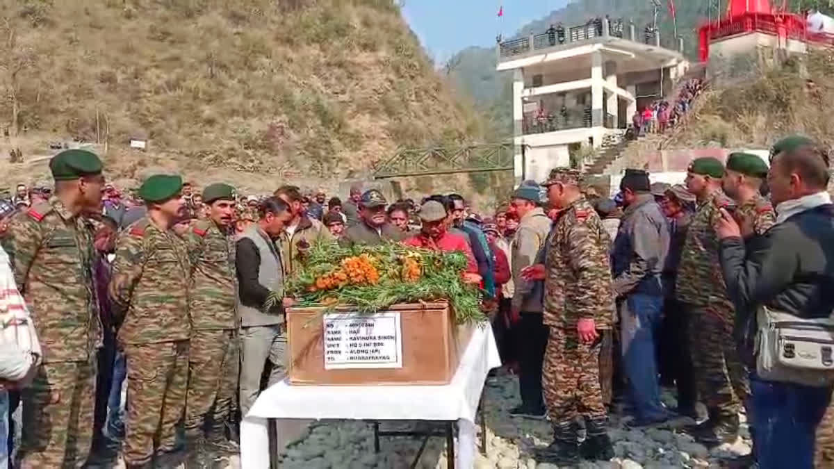 शहीद जवान का पार्थिव शरीर सोमवार रात्रि में रुद्रप्रयाग आर्मी कैंप लाया गया। जहां से आज पूरे सैन्य सम्मान के साथ पार्थिव शरीर अंतिम दर्शन के लिए उनके पैतृक गांव आगर, दशज्यूला ले जाया जाएगा, जिसके बाद रुद्रप्रयाग संगम पर पूरे सैन्य सम्मान के साथ अंत्येष्टि की गई। रुद्रप्रयाग संगम में अंत्येष्टि के दौरान क्षेत्र वासियों, स्थानीय लोगों, जनप्रतिनिधियों और केदारनाथ विधायक ने अंतिम विदाई में सम्मिलित हुए।